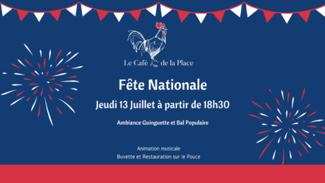 Toute l’équipe du Café de la Place sera heureuse de vous retrouver Jeudi 13 Juillet à partir de 18h30 , pour célébrer ensemble notre Fête nationale.